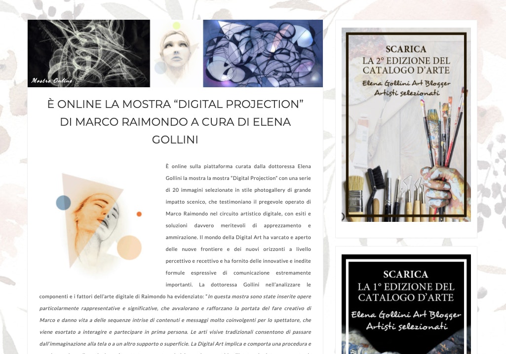 Digital Projection a solo on-line exhibition active since April 28 on the Dott.essa Elena Gollini Art Blog.