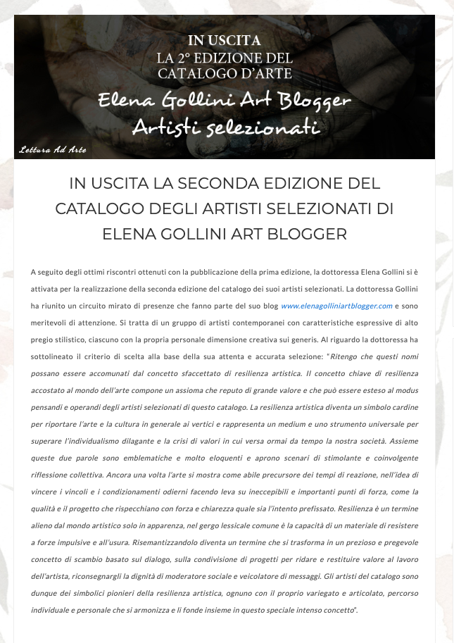 Happy to be selected for the 2° edition of the Elena Gollini's Artists Catalog.